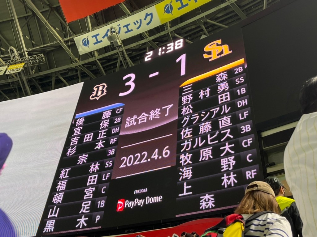 paypayドームでソフトバンクホークス対オリックス・バファローズの観戦。