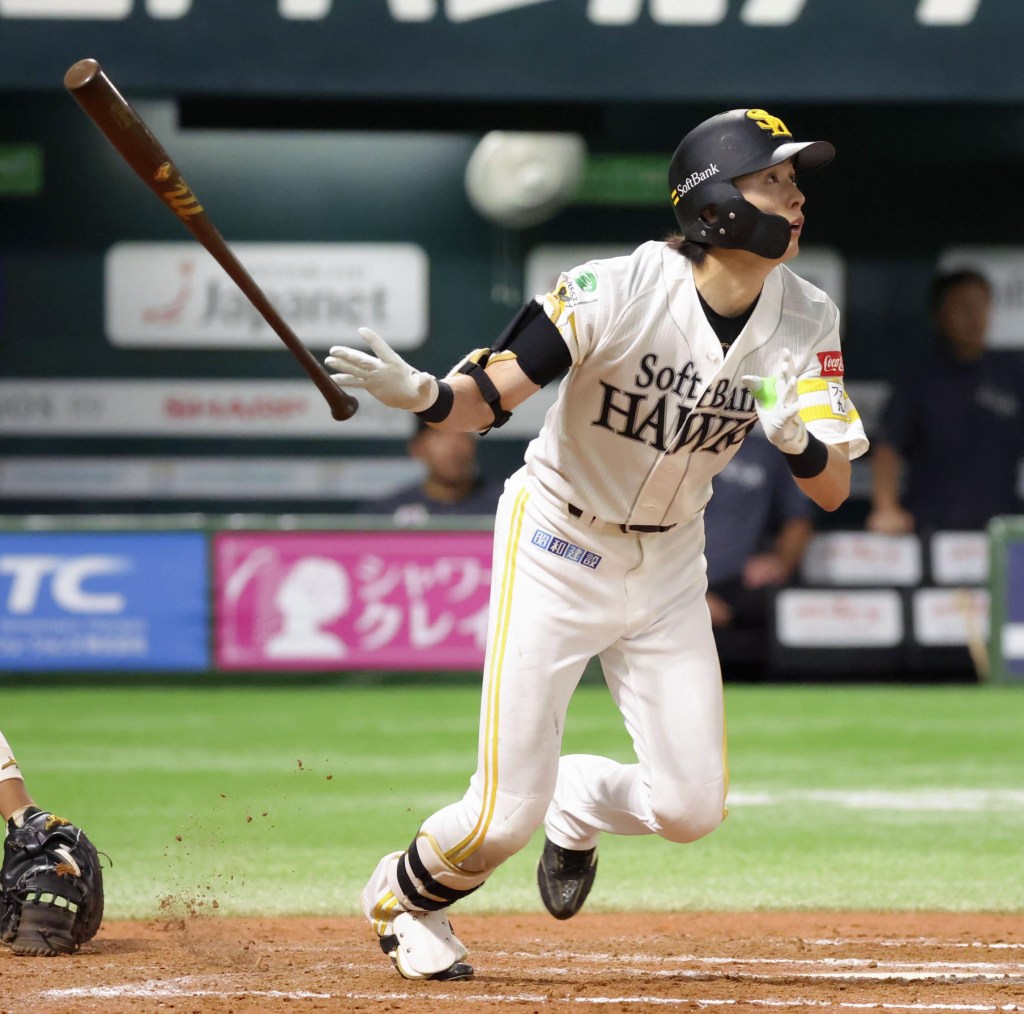 ホークスは二死から周東が右中間へ勝ち越しの本塁打を打ち2-1と勝ち越すと
